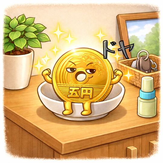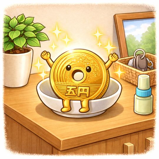 五円玉を玄関のある場所に置くだけで、あなたの金運が静かに目を覚まします。