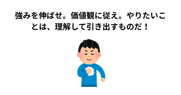 「強みを伸ばせ。価値観に従え。やりたいことは、理解して引き出すものだ!」